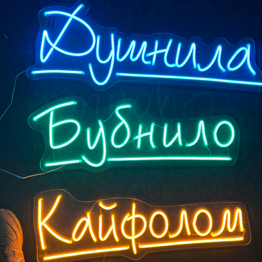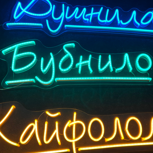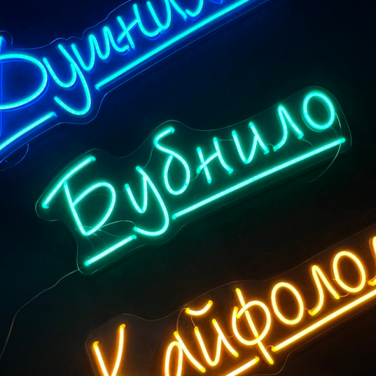 Цвет неона:Холодный белый, Теплый белый, Лимонный, Жёлтый, Оранжевый, Красный, Розовый светлый, Фиолетовый, Розовый, Голубой, Синий, Зелёный, Комбинированный
