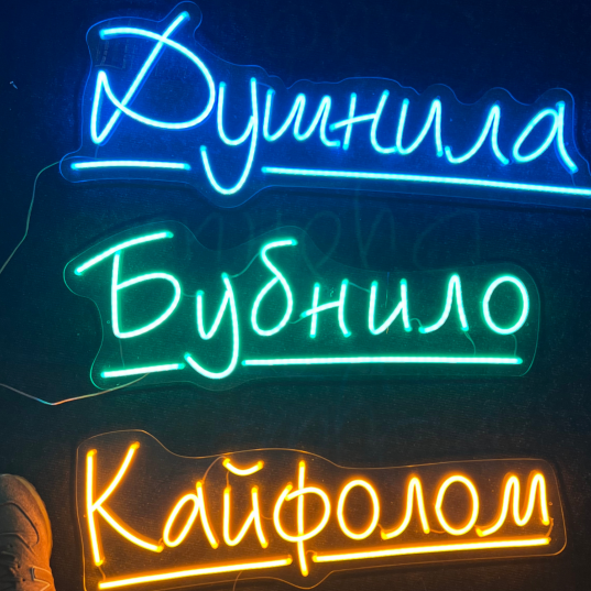 Цвет неона:Холодный белый, Теплый белый, Лимонный, Жёлтый, Оранжевый, Красный, Розовый светлый, Фиолетовый, Розовый, Голубой, Синий, Зелёный, Комбинированный